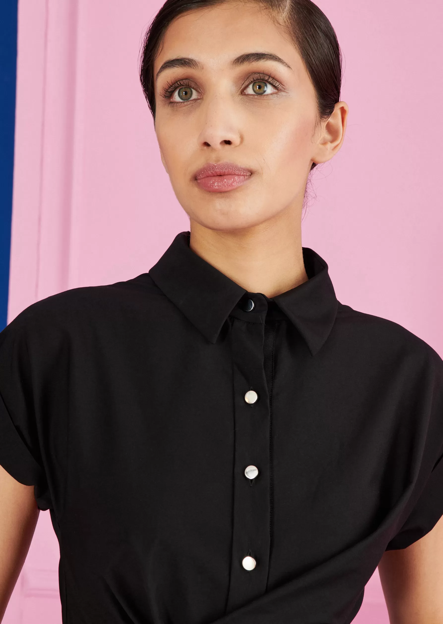 discover your thirst for adventure in everyday life with this swinging day dress in a trendy midi length! thanks to the attached cargo pockets, the short drop sleeves, the box pleats and side slits, you’ll master the challenges of the concrete jungle with ease. the shirt bodice with collar and button placket flows into a draped belt to make the most of you waist. fashionable slippers go well with this summer dress as well as sandals or statement heels.