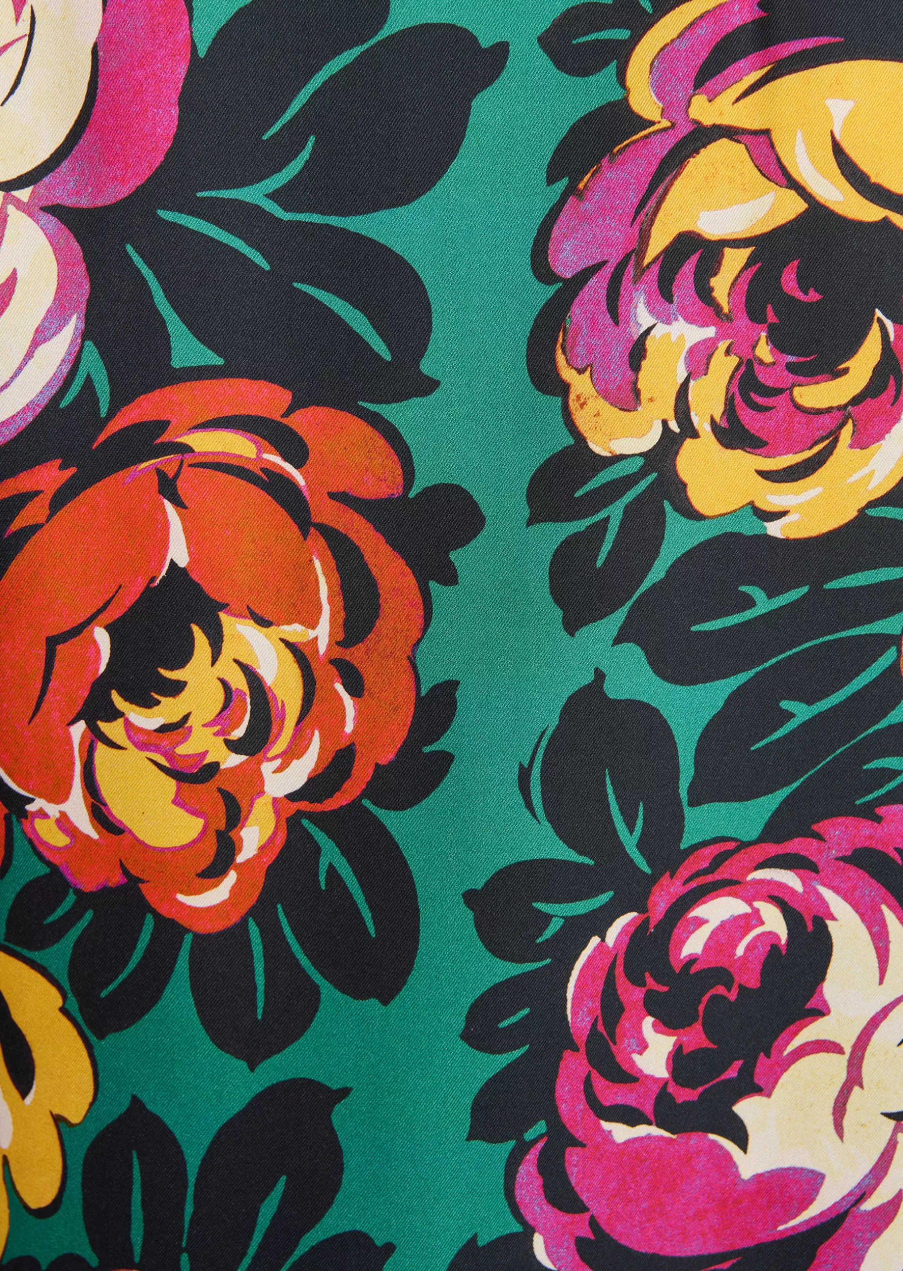 This blouse is a floral office hit: the cut is straight and it features a subtle button placket, a collar and slim-fitting sleeves with cuffs. The material adds a certain freshness. We made this top out of a lightweight silk satin that is wonderfully flowing and cooling and that spreads feel-good vibes right away thanks to its cheerful print. With the detachable pussycat bow, you can give it a prettier, more playful look as and when you please. Wear this blouse under a blazer with simple business pants, or with the matching culottes or a midi skirt for an exciting summer look.
