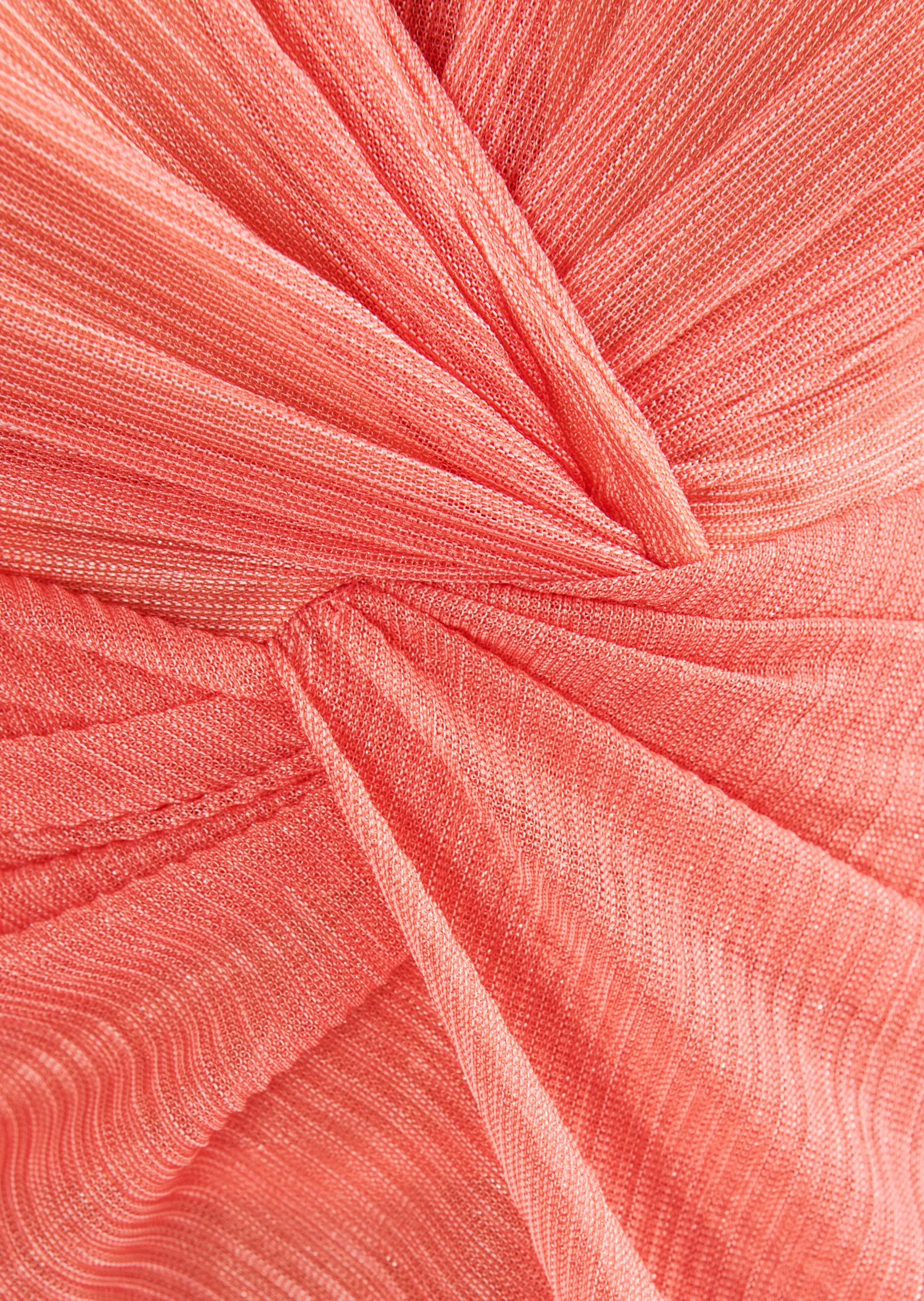Quite twisted – and we mean that literally. Our new jumpsuit twists in an almost racy pirouette at the top. This produces a sophisticated knot detail that accentuates the feminine V-neckline. Additionally, targeted draping gives the illusion of a wasp waist. The leg is wide but not too loose, so you can move freely and enjoy the dance floor. This is when the asymmetric cape unfurls its full effect. Wear this glamorous, shimmering voile piece with simple, understated accessories. It will still make you shine.