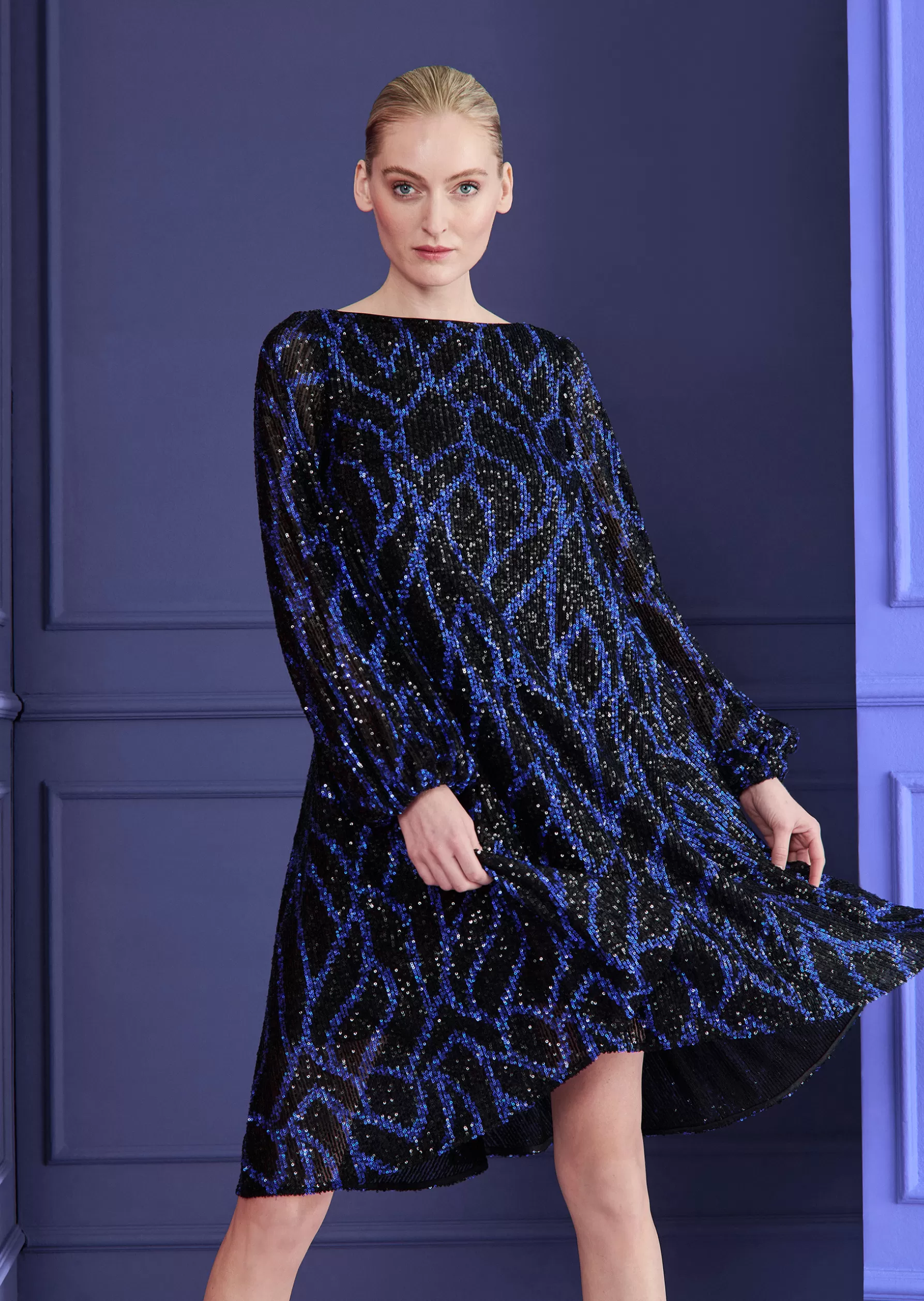 Glamourös, extravagant und super lässig: Unser Cocktailkleid aus funkelnden Stretch Tulle Sequins ist ein Spotlight-Garant, wann immer Sie in diesem kurzen Kleid auftauchen. Der Schnitt ist modern und kommt mit viel Weite daher. Vorne reicht die Länge übers Knie und inszeniert Ihre schönen Beine. Hinten sorgt zusätzliche Weite für noch mehr Schwung beim Tanzen. Und lange Ärmel machen dieses Kleid zum perfekten Look selbst in der kühleren Jahreszeit, ob bei der Weihnachtsfeier mit Kollegen oder Familie oder dem Cocktail am Abend. Und sollte Ihnen dieses Kleid zu viel Bein zeigen, tragen Sie es einfach als Tunika über Ihren Lederleggins. In jedem Fall können Sie in diesem Kleid mit dem Nachthimmel um die Wette glitzern.