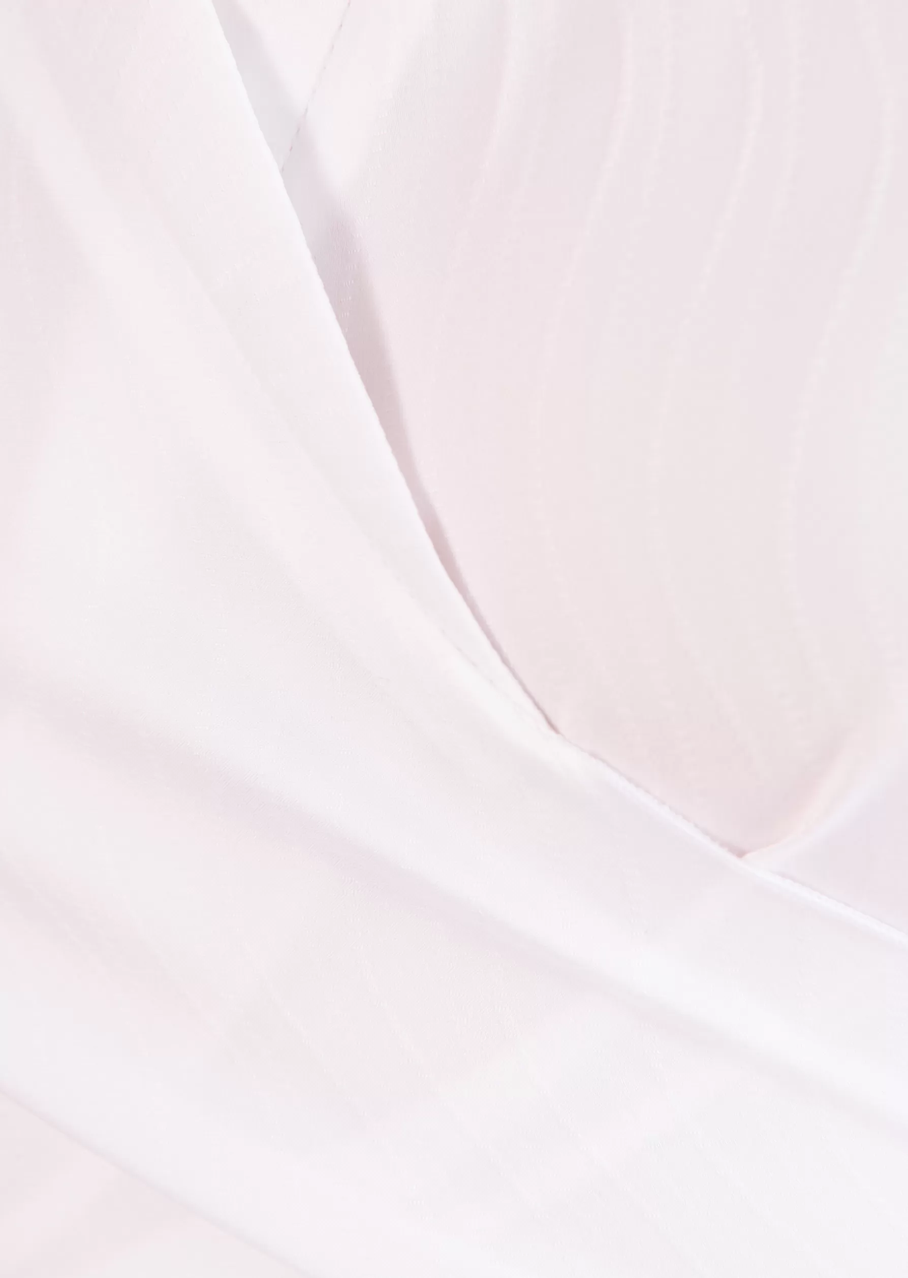 The simple wrap-over cut of this long-sleeved blouse looks flattering on absolutely any figure. Laced tightly at the waist, its gathers give every woman an hourglass figure. We designed this top in a beautiful, pleasantly lightweight stretch taffeta fabric. As your new favorite piece, you can easily style it with a casual pair of jeans for everyday wear or with a chic skirt for an evening out.